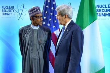 | Keywords: washington dc washingtondc state department statedepartment nss nuclear security nuclearsecurity nuclear security summit nuclearsecuritysummit 2016 U.S. Secretary of State John Kerry and Nigerian President Muhammadu Buhari pose for a photo before their bilateral meeting on the sidelines of the 2016 Nuclear Security Summit in Washington, D.C., on March 31, 2016. [State Department photo/ Public Domain]. More photos at www.flickr.com/photos/141427878@N08/ U.S. Secretary of State John Kerry and Nigerian President Muhammadu Buhari pose for a photo before their bilateral meeting on the sidelines of the 2016 Nuclear Security Summit in Washington, D.C., on March 31, 2016. [State Department photo/ Public Domain]. More photos at www.flickr.com/photos/141427878@N08/ |