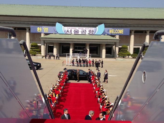 | Keywords: Secretary Kerry Departs South Korea.jpg en U S Secretary of State John Kerry says farewell to Moon Seoung-hyun Deputy Director General of the Ministry of Foreign Affairs for North America and the U S Ambassador to South Korea Sung Kim before boarding the plane to depart Seoul South Korea on April 13 2013 State Department photo/ Public Domain 2013-04-13 08 58 22 http //www flickr com/photos/statephotos/8644479890/sizes/o/in/photostream/ U S Department of State 37 449 127 10866666667 U S Department of State http //flickr com/photos/9364837 N06/8644479890 2013-04-13 05 50 12 United States Government Work PD-USGov Uploaded with UploadWizard John Kerry in 2013 Sung Kim |