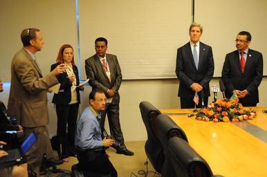 | Keywords: Secretary Kerry and Ethiopian Foreign Minister Adhanom Hold a News Conference in Addis Ababa.jpg en U S Secretary of State John Kerry takes a question from Scott Stearns of Voice of America as he and Ethiopian Foreign Minister Tedros Adhanom hold a news conference at the 50th anniversary African Union Summit in Addis Ababa Ethiopia on May 25 2013 State Department photo/ Public Domain 2013-05-25 02 13 04 http //www flickr com/photos/statephotos/8825291952/sizes/o/in/photostream/ U S Department of State U S Department of State http //flickr com/photos/9364837 N06/8825291952 2013-05-25 14 58 57 United States Government Work PD-USGov Tedros Adhanom Ghebreyesus Uploaded with UploadWizard John Kerry visit to Ethiopia May 2013 |