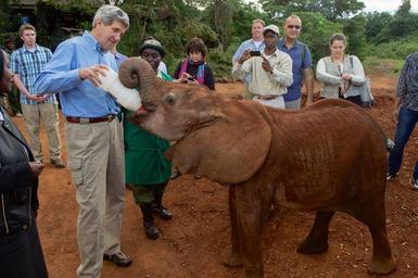 | Keywords: Secretary Kerry Feeds a Baby Elephant at the Sheldrick Elephant Orphanage in Nairobi (17332222906).jpg en U S Secretary of State John Kerry feeds a baby elephant at the Sheldrick Elephant Orphanage in Nairobi National Park in Nairobi Kenya on May 3 2015 following a wildlife tour of the Park and before a series of government meetings 2015-05-03 10 13 59 https //www flickr com/photos/statephotos/17332222906/ U S Department of State other versions U S Department of State http //flickr com/photos/9364837 N06/17332222906 2015-05-04 21 01 36 United States Government Work PD-USGov Uploaded with UploadWizard John Kerry visit to Kenya May 2015 Nairobi National Park Elephants of Kenya |
