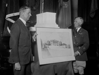 | Keywords: Secretary of War Dwight Davis and Major General BFCheatham unveil Tomb of Unknown Soldier - 1928-12-10.jpg en The Secretary of War Dwight F Davis left and Major General B F Cheatham Quartermaster General of the United States Army display the winning design and model for the Tomb of the Unknown Soldier in Arlington National Cemetery in Arlington County Virginia in the United States The design was submitted by Thomas Hudson Jones sculptor and Lorimer Rich architect Their design was one of 73 submitted http //www loc gov/pictures/item/hec2013005242/ Harris Ewing 1928-12-10 Tomb of the Unknowns PD-USGov |