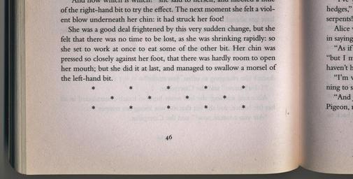 | Keywords: Section break 02 by Pengo.jpg Alice in Wonderland 1865 opened to Chapter 5 page 46 to illustrate a section break Alice in Wonderland was first published in 1865 and is now public domain The complete text of the book is available on Wikisource own Pengo 2010-11-04 The original work is public domain Author died more than 70 years ago I also release this derivative work into the public domain see below <gallery> File Section break 01 by Pengo jpg Two page spread File De Alice's Abenteuer im Wunderland Carroll pic stars jpg The stars only </gallery> PD-old Alice in Wonderland Section breaks |