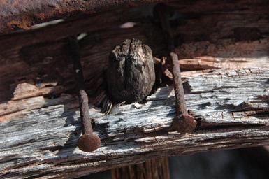 Keywords: sedona arizona old wagon wheel rusty cowboy western artwork architecture spokes southwestern wagon nails rusty nails wood wooden nail truss strip of wood plank