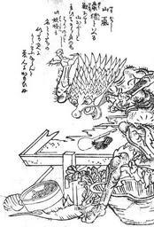 | Keywords: SekienYama-oroshi.jpg Yama-oroshi 山颪 A possessed vegetable grater almost porcupine-like in appearance from the Gazu Hyakki Tsurezure Bukuro 百器徒然袋 scanned from ISBN 978-4-336-03386-4 1784 Toriyama Sekien 鳥山石燕 Japanese 1712 1788 PD-Japan Gazu Hyakki Tsurezure Bukuro Tsukumogami |