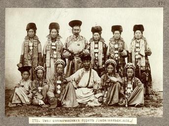 | Keywords: Selenginskie buryaty.jpg ru Селенгинские бу яты Selenga Buryats Novosibirsk State Museum of Regional History and Folk Life Novosibirsk Russia http //hdl loc gov/loc ndlpcoop/mtfxph eet0005 Veniukov L unknown century 19 PD-old Group photographs History of Buryatia Buryat people Fur caps Male fur headgear Group portraits with 12 persons Buryat costumes |