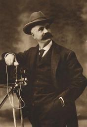 | Keywords: portraits monochrome Photographer: Reuben R. Sallows (1855 - 1937) Description: Studio portrait of middle-aged man, three-quarter length, standing, facing right; wears black jacket, buttoned vest, pants and tie, white shirt, dark fedora; white hair, dark full moustache; right hand in pants pocket, left arm rests atop camera, holds air-release cable; camera on tri-pod on left; shadowed backdrop Object ID : 0530-rrs-ogohc-ph View additional photographs by Sallows that are held in other collections at the Reuben R. Sallows Digital Library. Order a higher-quality version of this item by contacting the Huron County Museum (fee applies). Photographer: Reuben R. Sallows (1855 - 1937) Description: Studio portrait of middle-aged man, three-quarter length, standing, facing right; wears black jacket, buttoned vest, pants and tie, white shirt, dark fedora; white hair, dark full moustache; right hand in pants pocket, left arm rests atop camera, holds air-release cable; camera on tri-pod on left; shadowed backdrop Object ID : 0530-rrs-ogohc-ph View additional photographs by Sallows that are held in other collections at the Reuben R. Sallows Digital Library. Order a higher-quality version of this item by contacting the Huron County Museum (fee applies). |