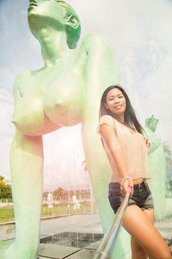 Keywords: selfie woman young selfie stick statue nude napa art park love art park pattaya jasica jaew napaporn sripirom thai lady model