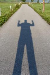 Keywords: selfy shadow self portrait hispanic man person road asphalt away shadow play