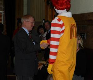 Keywords: indoor Senator Kent Lambert greets Ronald McDonald on the Senate floor. Learn more at www.ColoradoSenateNews.com Senator Kent Lambert greets Ronald McDonald on the Senate floor. Learn more at www.ColoradoSenateNews.com