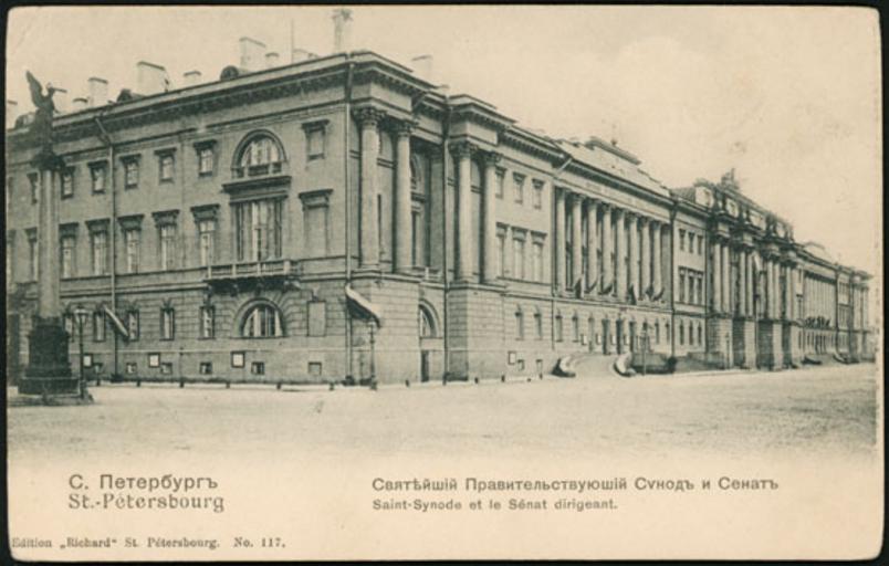 | Keywords: Senate Square SPb 000000257 1 m.jpg Saint Petersburg Russia Senate Square Санкт-Пете бу г Сенатская площадь Здание Сената и Синода Saint-Pétersbourg Le Cavalier de bronze statue http //www nlr ru/petersburg/spbpcards/admiralt/3 htm author 1900-1917 PD-Old Senate Sinod building Postcards of Saint Petersburg Black and white photographs of buildings |