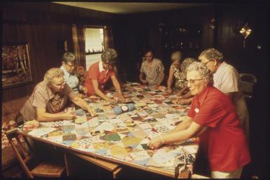 | Keywords: SENIOR CITIZENS IN NEW ULM, MINNESOTA, MAKING A QUILT. THEY ARE ATTEMPTING TO KEEP THE OLD FRONTIER CRAFTS ALIVE. NEW... - NARA - 558340.jpg Scope and content General notes 558340 Local identifier 412-DA-15890 Environmental Protection Agency 12/02/1970 - NARA-Author Schulke Flip 1930-2008 Photographer 2435383 <br /> New Ulm Brown Minnesota United States North and Central America inhabited place 4202438 44 3 -94 45 <br /> Still Picture Records Section Special Media Archives Services Division NWCS-S National Archives at College Park 8601 Adelphi Road College Park MD 20740-6001 07/1974 Record group Record Group 412 Records of the Environmental Protection Agency 1944 - 2006 Record group ARC 708 DOCUMERICA The Environmental Protection Agency's Program to Photographically Document Subjects of Environmental Concern compiled 1972 - 1977 Series ARC 542493 File unit File unit ARC Variant control numbers Agency-Assigned Identifier 265/50/015890<br /> NAIL Control Number NWDNS-412-DA-15890 Other versions <gallery> File SENIOR_CITIZENS_IN_NEW_ULM _MINNESOTA _MAKING_A_QUILT _THEY_ARE_ATTEMPTING_TO_KEEP_THE_OLD_FRONTIER_CRAFTS_ALIVE _NEW _-_NARA_-_558340 tif tif File SENIOR_CITIZENS_IN_NEW_ULM _MINNESOTA _MAKING_A_QUILT _THEY_ARE_ATTEMPTING_TO_KEEP_THE_OLD_FRONTIER_CRAFTS_ALIVE _NEW _-_NARA_-_558340 jpg jpg </gallery> NARA-cooperation PD-USGov July 1974 in Minnesota |