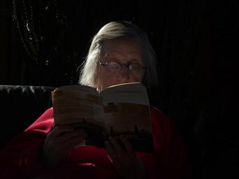 Keywords: seniorin old woman age woman grandma human face read concentration