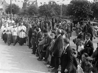 | Keywords: consecration church procession priest altar boys altarboys kilbride meath ireland september 1931 1930s roman catholic romancatholic independent newspapers collection independentnewspaperscollection national library of ireland nationallibraryofireland blackandwhite monochrome outdoor people crowd black and white Procession through the streets of Kilbride, Co. Meath to mark the consecration of a new church in the town, by Dr. Mulvany, Bishop of Meath. The church itself was constructed using white granite that had been quarried at Sandford, Co. Dublin. The Irish Independent, 14 September 1931, reported: "For the past 150 years - through the dark period of the Penal days, up to last Christmas - the people of the district have assisted at Mass in a tiny church erected in the closing years of the 18th century." Date: 14 September 1931 NLI Ref.: IND_H_1818 Procession through the streets of Kilbride, Co. Meath to mark the consecration of a new church in the town, by Dr. Mulvany, Bishop of Meath. The church itself was constructed using white granite that had been quarried at Sandford, Co. Dublin. The Irish Independent, 14 September 1931, reported: "For the past 150 years - through the dark period of the Penal days, up to last Christmas - the people of the district have assisted at Mass in a tiny church erected in the closing years of the 18th century." Date: 14 September 1931 NLI Ref.: IND_H_1818 |