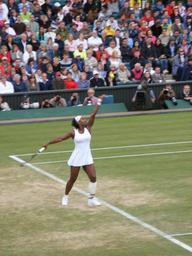 Keywords: Serena Williams Serve Wimbledon.JPG Serena Williams serves at Wimbledon on Centre Court against Justine Henin Own 2007-07-04 Clavecin 2007 Wimbledon Championships Serena Williams in 2007 Service tennis
