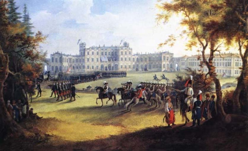 | Keywords: Sergeev. Military parade.jpg Artwork Creator Gabriel Sergeev ru Военный па ад на дво цовой площади около Большого Гатчинского дво ца en The en Gatchina palace of en Count Orlov 18th-cent watercolour 1798 watercolor object history credit line accession number http //allross ru/lenobl/gatchina/his htm User Art-top/Upload art works PD-old-100 Gatchina Park in art 1798 watercolor paintings Gabriel Sergeev Southern facade of the Gatchina Palace Parades in Russia | ||||