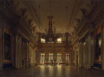| Keywords: Sergey Konstantinovich Zaryanko - The Fieldmarshals' Hall in the Winter Palace - WGA25950.jpg Artwork Creator Sergey Konstantinovich Zaryanko 1836 Oil on canvas size cm 81 109 Institution Hermitage Museum object history credit line accession number WGA link 25950 http //www wga hu/art/z/zaryanko/interio1 jpg http //www wga hu/html/z/zaryanko/interio1 html PD-old-100 painting interior Russian 1801-1850 Sergey Zaryanko Russian paintings in the Hermitage 1836 paintings from Russia WGA form painting WGA type interior WGA School Russian WGA time period 1801-1850 |