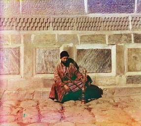 | Keywords: Sergey Prokudin-Gorsky - S chilimom. Samarkand.jpg Artwork Creator Sergey Prokudin-Gorsky Water pipe Samarkand / Man seated with water pipe hookah next to an ornate wall 1905 1915 photo cm accession number object history credit line exhibition history prokc 21779 PD-Russia PD-1923 Photos of people of Central Asia by Sergey Prokudin-Gorsky Hookahs People smoking the hookah | ||||