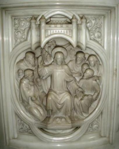 | Keywords: Sermon on the Mount.JPG en The Sermon on the Mount - The central panel on the pulpit of St Stephen's Church Bournemouth as carved by Nathaniel Hitch own Weglinde Gordon Lawson Cc-zero Sculptures by Nathaniel Hitch St Stephen's Church Bournemouth Sermon on the Mount |