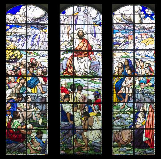 Keywords: Sermon on the mount window.jpg en Sermon on the mount windows at Herzogenbuchsee Reformed church near Berne Picture by Eugène Burnand 1910 glass by Emil Gerster of Basel 1911 1910 and 1911 own Creator Eugène Burnand PD-old-1923 Eugène Burnand Sermon on the Mount on stained glass windows Reformierte Kirche Herzogenbuchsee 1910 paintings from Switzerland 1910 paintings in Switzerland 1911 stained glass windows Stained glass windows in the canton of Bern |