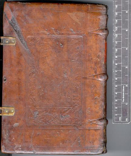 | Keywords: Sermones quadragesimales - Lower cover (c66e6).jpg Style Panel design Religious miscellaneous; Caption Lower cover; Colour Brown; Edge Unspecified exhibition history Decorative Technique Panel stamp in blind Tooled in blind; Cover Material Calf Wooden boards Traces of 2 pairs of clasps But Macchi states; c 1498-1515 Normandy Robert or Richard Macé Annunciation panel-stamp 6 known examples D Gid- M -P Laffitte Les reliures à plaques françaises p 39-40 28 n 1 ; Virgin's coronation panel-stamp 6 known examples D Gid- M -P Laffitte Les reliures à plaques françaises p 92-93 64 n 1 object history Text 1506; Lyons; Unspecified object type Cc-zero place of creation Binding England place of discovery See J B Oldham Blind Panels of English Binders Cambridge 1958 Bib see upper cover British Library image http //www bl uk/catalogues/bookbindings/LargeImage aspx RecordId 020-000002668 ImageId ImageId 40939 Copyright BL Sermones quadragesimales Uploaded with GWToolset Sermones quadragesimales - Lower cover c66e6 http //www webarchive org uk/bldatasets/bindings/5427_3 jpg Bookbinding 16th-century bookbinding British Library Bookbindings |