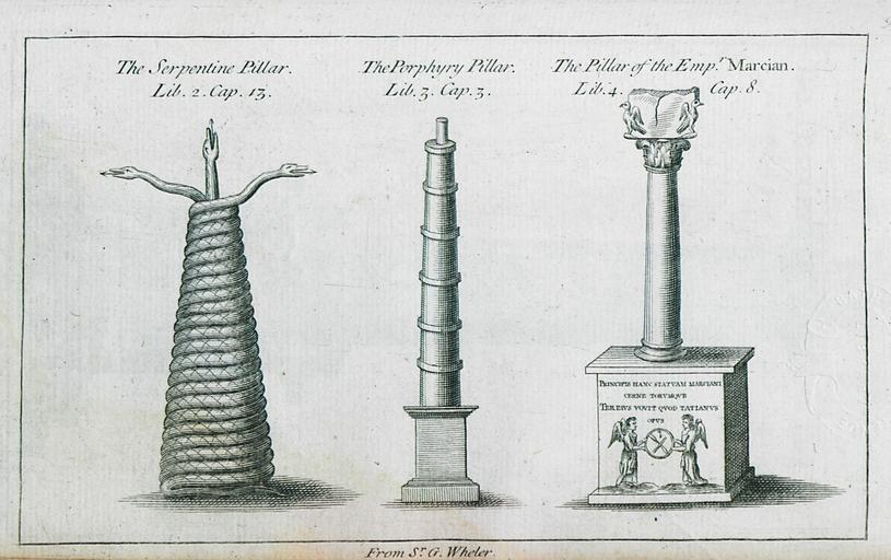 | Keywords: Serpent Column, Constantine's column, Marcian's column - Sr. G. Wheler, Constantinople, 1729.jpg el Ανα αράσταση του 1729 των μνημείων του Ι οδρόμου στην Κωνσταντινού ολη Α ό αριστερά ρος τα δεξιά ο Τρικαρηνός Όφις η στήλη του Κωνσταντίνου και ο κίονας του αρκιανού en 1784 depiction of the monuments at the Hippodrome of Constantinople From right to left the Serpent Column Constantine's column and Marcian's column 1729 http //el travelogues gr/item php view 46730 Sr G Wheler other versions Original source GILLES Pierre The antiquities of Constantinople London John Ball 1729 Custom license marker 2015 11 08 PD-old-100 PD-US-unpublished Hippodrome of Constantinople Serpent Column in art Column of Constantine Column of Marcian Uploaded with UploadWizard |