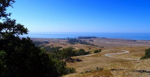 Keywords: serpentine road view ocean pacific coastline road hilly bend landscape san simeon california usa america