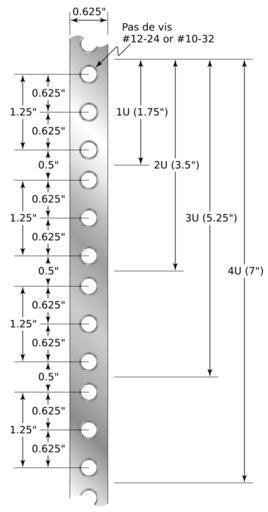 | Keywords: Server rack rail dimensions-FR.svg rack unit showing how typical rack units 1U through 4U are distributed among the mounting holes This is the french version http //commons wikimedia org/wiki/File Server_rack_rail_dimensions svg Sakurambo Hashar 2007-08-06 File Server rack rail dimensions svg english version Cc-zero IEC standards Servers Computer hardware 19 -Racks |