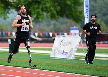 | Keywords: Service Members Participate in DoD Warrior Games Track and Field Event 160616-N-JP566-095.jpg en WEST POINT N Y June 16 2016 -- Army veteran Sgt Stefan LeRoy is cheered on by teammate Army veteran Staff Sgt Eric Pardo during the men's 800-meter dash at the 2016 DoD Warrior Games held at the U S Military Academy at West Point NY June 16 2016 The DoD Warrior Games June 15-21 is an adaptive sports competition for wounded ill and injured service members and Veterans Athletes representing teams from the Army Marine Corps Navy Air Force Special Operations Command and the United Kingdom Armed Forces compete in archery cycling track and field shooting sitting volleyball swimming and wheelchair basketball U S Navy photo by Mass Communication Specialist 1st Class Patrick Gordon/Released <br>Unit Naval Mobile Construction Battalion Two Five NMCB-25 2016-06-16 Petty Officer 1st Class Patrick Gordon https //www dvidshub net/image/2666351/service-members-participate-dod-warrior-games-track-and-field-event 160616-N-JP566-095 2016-06-16 21 02 WEST POINT NY US PD-USGov-Military-Navy Warrior Games Images from DoD uploaded by Fæ |