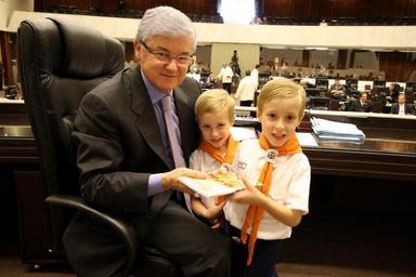 Keywords: Deputado Valdir Rossoni (PSDB) com os pequenos desbravadores / Foto: Nani Gois (uso do crédito obrigatório) sessão