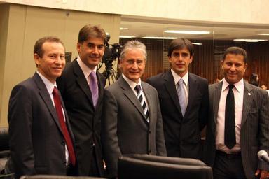 | Keywords: people groupshot indoor Deputados representantes do Oeste do Paraná na AL, Professor Lemos (PT), Paranhos (PSC), André Bueno (PDT), Adelino Ribeiro (PSL) e prefeito de Cascavel, Edgar Bueno. Foto: Nani Gois / Alep Deputados representantes do Oeste do Paraná na AL, Professor Lemos (PT), Paranhos (PSC), André Bueno (PDT), Adelino Ribeiro (PSL) e prefeito de Cascavel, Edgar Bueno. Foto: Nani Gois / Alep | ||||