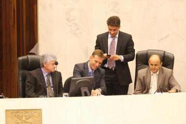 Keywords: Presidente Valdir Rossoni (PSDB), Fábio Camargo (PTB), Evandro Junior (PSDB) e Dr. Batista (PMN). Foto: Nani Gois / Assembleia Legislativa do Paraná