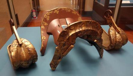 | Keywords: Set of Saddle and Stirrups, Edo period, 19th century, scroll design in maki-e lacquer - Tokyo National Museum - DSC05942.JPG en Exhibit in the Tokyo National Museum Tokyo Japan This artwork is old enough so that it is in the public domain 2013-09-03 00 14 05 own Daderot cc-zero Japanese armour at the Tokyo National Museum Uploaded with UploadWizard Stirrups of Japan Maki-e | ||||