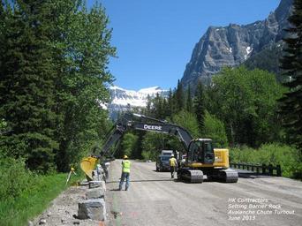 Keywords: Setting barrier rock at Avalanche Chute turnout, June 2013 GlacierNPS