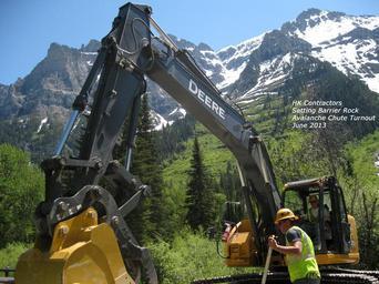 Keywords: Setting barrier rock at Avalanche Chute Turnout, June 2013 GlacierNPS
