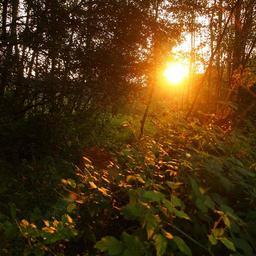 Keywords: setting sun forest leaves trees silhouette nature evening brand silence