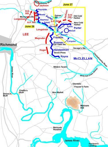 | Keywords: Seven Days June 26-27.jpg  Map of the en Seven Days Battles en Peninsula Campaign of the en American Civil War actions on June 26-27 1862 Drawn by Hal Jespersen in Macromedia Freehand Source file available in http //posix com/CWmaps The reason this is a JPEG is that I have found that PNG versions Transferred from http //en wikipedia org en wikipedia; transfer was stated to be made by User Hejsa 2006-03-05 Original uploader was Hlj at http //en wikipedia org en wikipedia Released into the public domain by the author en wikipedia Hlj original upload log page en wikipedia Seven_Days_June_26-27 jpg 2006-03-05 19 03 Hlj 1534×2088× 493628 bytes <nowiki>Map of the Seven Days Battles Peninsula Campaign of the American Civil War actions on June 26-27 1862 Drawn by Hal Jespersen in Macromedia Freehand Source file available in http //posix com/CWmaps The reason this is a JPEG is that I ha</nowiki> Seven Days Battles Battle of Mechanicsville Battle of Savage's Station Maps of the Seven Days Battles |