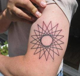 | Keywords: Seventeen-point star tattoo.jpg en Photo my wife Colleen took Asked her; she released all rights The page that inspired the tattoo http //primepuzzle com/blog/starps17 html The particular image-page http //primepuzzle com/blog/st17s6 jpg 2012-07-28 own Deanmoore cc-zero Small Icosihemidodecahedron Arm tattoos Mathematical tattoo |