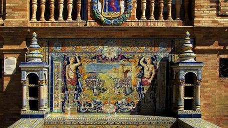 | Keywords: sevilla city spain province of badajoz picture the art of ceramics ceramic tile monument coat of arms royal ornament decoration artistic the product the work of lake dusia brick tiles decorative square spanish azulejos ornamentation history |