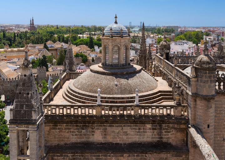 Keywords: seville spain city urban sky clouds buildings skyline cities architecture cathedral church landmark destinations trees outside summer spring