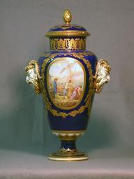 Keywords: Sèvres Porcelain Manufactory - One of a Pair of Vases (Vase à bandes) - Walters 48560.jpg Walters Art Museum artwork Creator Manufacture nationale de Sèvres This neoclassical vase is distinguished by its satyr-head handles At Sèvres a plaster model for these shapes is inscribed with the name of the sculptor Etienne-Maurice Falconet 1716-1791 but the designer was more likely the director of sculpture at the manufactory Louis-Simon Boizot 1743-1809 Jean-Louis Morin 1731-1787 decorated the vases with harbor scenes and Jean Pierre Boulanger père 1722-1785 was responsible for the gilding 1776 soft-paste porcelain with paint and gilt cm 42 6 accession number 48 560 12454 Lady Ashburaton Collection E M Hodgkins Collection Paris no 45 date and mode of acquisition unknown A Seligmann Rey and Co New York Henry Walters city Baltimore Walters Art Museum Henry Walters Acquired by Henry Walters 1928 Factory Mark Intertwined L1s in blue; Date Letter in blue Y 1776 ; Decorator's Mark In blue M Morin Jean-Louis ; Gilder's Mark In blue B Boulanger Jean Pierre place of origin Sèvres France Walters Art Museum license Sèvres porcelain in the Walters Art Museum Media contributed by the Walters Art Museum needs artist review Jean-Louis Morin Louis-Simon Boizot Gilded vases