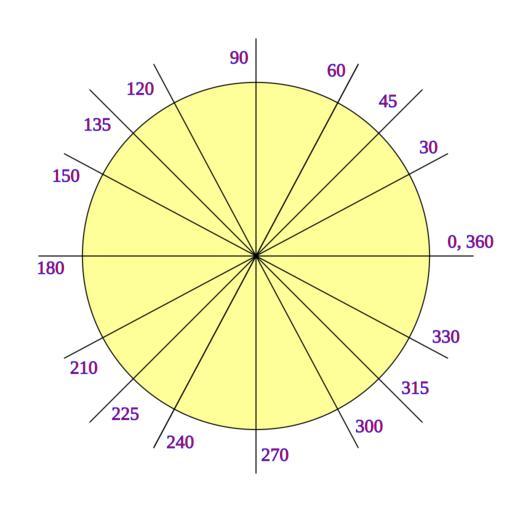Keywords: SexaCircunferencia.svg en escala sexagesimal circulo unitario Own 6-1-2008 User Dnu72 GFDL SVG trigonometric circles Trigonometric circles with angle markings