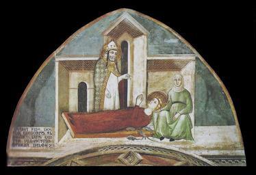 | Keywords: SG St Gregory appears to St Fina, Nicola di Segna di Bonaventura.JPG title San Gregorio papa che predice a Santa Fina il giorno della sua morte St Gregory appearing to Saint Fina to announce her death Wikimedia Commons Vignaccia76 fresco langswitch Duomo di San Gimignano Collegiate church of San Gimignano attributed to text lower left century 14 PD-Art S geregorio_annuncia_la_morte_a_santa_fina _scuola_duccio jpg Present version colour adjusted Duomo San Gimignano - frescos Niccolò di Segna |