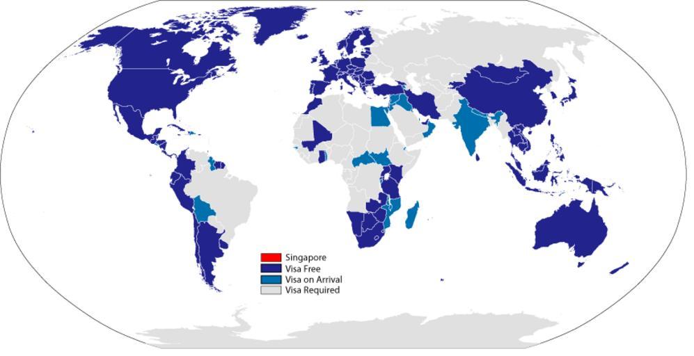 Keywords: Sgpassportmap.png Countries with visa-waiver visa free or visa on arrival for Singapore Citizens/Ordinary Passport Holders en wikipedia kwloo 2007-08-23 Noblesham / Passportguy / Jiajing / Ozguroot / Kwloo kwloo Original upload log en wikipedia SingaporeVisaFree PNG 2012-08-08 18 56 Kwloo 863×443× 31061 bytes 2012-08-08 18 53 Kwloo 863×443× 28564 bytes <nowiki>Updated latest countries checked against Timatic Web and list of countries from National Geographic</nowiki> 2010-02-14 20 10 Ozguroot 1425×625× 38794 bytes <nowiki>-Yemen Iran VOA</nowiki> 2010-01-21 09 43 Jiajing 1425×625× 104151 bytes <nowiki>+ India Visa on Arrival </nowiki> 2009-06-16 14 16 Passportguy 1425×625× 34411 bytes <nowiki>+ Georgia</nowiki> 2009-05-15 14 38 Passportguy 1425×625× 34273 bytes <nowiki>- Liberia</nowiki> 2009-05-15 14 37 Passportguy 1425×625× 34273 bytes <nowiki>- Niger + Macedonia</nowiki> 2008-09-14 22 33 Avala 1425×625× 34174 bytes <nowiki></nowiki> version lost 2008-07-23 12 09 Passportguy 1425×625× 34235 bytes <nowiki>+ Bangladesh VOA + Bosnia visa-free </nowiki> version lost 2008-04-29 19 58 Noblesham 1425×625× 34293 bytes <nowiki></nowiki> version lost 2008-04-25 07 05 Noblesham 1425×625× 33063 bytes <nowiki>Dominican Republic - visa on arrival Bangladesh - visa prior to arrival Kosovo - visa free Nauru - visa free</nowiki> version lost 2007-09-26 09 42 Noblesham 1425×625× 33089 bytes <nowiki> </nowiki> version lost 2007-09-14 13 08 Noblesham 1425×625× 33084 bytes <nowiki> </nowiki> version lost 2007-08-23 06 17 Noblesham 1425×625× 33143 bytes <nowiki> </nowiki> version lost Government of Singapore |