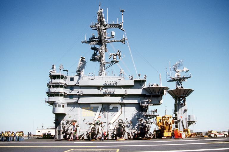 | Keywords: SH-3Hs of HS-17 parked next to the island of USS Abraham Lincoln (CVN-72) in 1990.jpeg U S Navy maintenance crew members work on Sikorsky SH-3H Sea King helicopters of Helicopter Anti-Submarine Squadron 17 HS-17 Nepture's Riders beside the island of the aircraft carrier USS Abraham Lincoln CVN-72 prior to the ship's departure from Naval Air Station Norfolk Virginia USA HS-17 was assigned to Carrier Air Wing 11 CVW-11 aboard the Abraham Lincoln for her voyage around South America between 25 September and 20 November 1990 6466822 1990-09-25 Don S Montgomery USN PD-USGov-Military-Navy SH-3H Sea King Helicopter Anti-Submarine Squadron 17 United States Navy USS Abraham Lincoln CVN-72 flight deck Ship radars of the United States Navy |