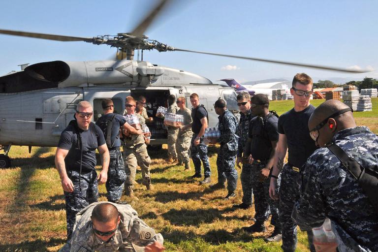 | Keywords: SH-60F loaded with water for distribution in Port-au-Prince 2010-01-18.jpg U S Navy sailors and U S Army soldiers load water to a SH-60F Oceanhawk helicopter for distribution to earthquake victims in Port-au-Prince Haiti Jan 18 2010 VIRIN 100118-N-5049H-464a http //www defense gov/PhotoEssays/PhotoEssaySS aspx ID 1540 2010-01-18 Seaman Stephen G Hale II USN PD-USGov-Military-Navy Files by User BrokenSphere Haiti 20100118 Operation Unified Response 20100118 SH-60F Oceanhawk 20100118 | ||||