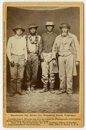 | Keywords: people photo border Repository: California Historical Society Collection: Photographic portraits of Modoc Indians of the Modoc War Photographer: Heller, Louis Herman Date: 1873 General note: Printed on mounts: I certify that L. Heller has this day taken the photographs of the above Modoc Indian prisoner under my charge. Capt. C.B. Throckmorton, 4th U.S. Artillery, Officer of the Day. I am cognizant of the above fact. Gen. Jeff. C. Davis, U.S.A. General note: Photos were published by Carleton E. Watkins. Watkins' Yosemite Art Gallery advertisement on verso. Format: Carte de visite Call Number: PC 006 Digital object ID: PC 006_07.jpg Preferred citation: Shacknasty Jim, Hooka Jim, Steamboat Frank, Fairchild, Photographic portraits of Modoc Indians of the Modoc War, PC 006, courtesy, California Historical Society, PC 006_07.jpg Repository: California Historical Society Collection: Photographic portraits of Modoc Indians of the Modoc War Photographer: Heller, Louis Herman Date: 1873 General note: Printed on mounts: I certify that L. Heller has this day taken the photographs of the above Modoc Indian prisoner under my charge. Capt. C.B. Throckmorton, 4th U.S. Artillery, Officer of the Day. I am cognizant of the above fact. Gen. Jeff. C. Davis, U.S.A. General note: Photos were published by Carleton E. Watkins. Watkins' Yosemite Art Gallery advertisement on verso. Format: Carte de visite Call Number: PC 006 Digital object ID: PC 006_07.jpg Preferred citation: Shacknasty Jim, Hooka Jim, Steamboat Frank, Fairchild, Photographic portraits of Modoc Indians of the Modoc War, PC 006, courtesy, California Historical Society, PC 006_07.jpg |