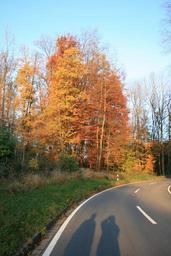 Keywords: shadow play human autumn road colorful asphalt leaves away golden autumn leaves in the autumn avenue landscape the curve of road fall color background trees