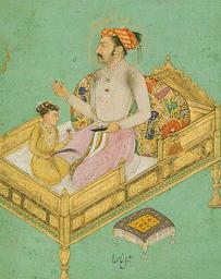 | Keywords: Shah Jahan with his son Dara Shikoh, from album made for Shah Jahan, ca. 1620.jpg en Prince Khurram Shah Jahan with his son Dara Shikoh Leaf from an album made for Emperor Shah Jahan ca 1620; Mughal period of Jahangir 1605 “27 by Nanha India Ink opaque watercolor and gold on paper http //www metmuseum org/toah/hd/mugh_2/ho_55 121 10 36 htm Nanha ca 1620 PD-Art Paintings of Shah Jahan Dara Shikoh 17th-century Mughal miniatures Watercolor paintings of men of India 1620s paintings from India Paintings from India in the Metropolitan Museum of Art Beds in art Furniture in India Paintings of children of India Fathers and sons in art Fathers and children in India |