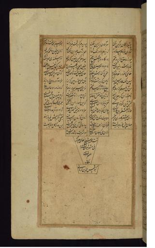 | Keywords: Shams al-Din Kirmani - Colophon - Walters W611287A - Full Page.jpg  This folio from Walters manuscript W 611 contains a colophon in Arabic that gives the name of the scribe and the date of copying islamic 1649 1059 Safavid; Qajar ink pigments laid paper cm 29 5 17 accession number W 611 287A 83408 Ibrahim date and mode of acquisition unknown partly visible seal impression dated 1230 AH on fol 1a Henry Walters Baltimore date and mode of acquisition unknown Walters Art Museum Henry Walters Acquired by Henry Walters Transliteration place of origin Iran Walters Art Museum license 2D Khamsa of Nizami Safavid Walters MS 611 Media contributed by the Walters Art Museum needs category review |