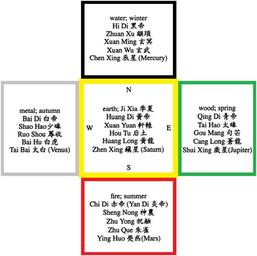 | Keywords: Shangdi-Huangdi religious cosmology.png Chinese traditional religious cosmology of the Wǔfāng Shàngdì 五方上 Five Forms of the Highest Deity with the Yellow Deity the Four-Faced God at the centre of the universe emanating the other four cosmological deities of directions and seasons Own reproduction of the scheme found at p 121 of The Chinese Sky During the Han Constellating Stars and Society 1997 by Xiaochun Sun and Jacob Kistemaker 23-2015 Aethelwolf Emsworth Confucianism Chinese folk religion |